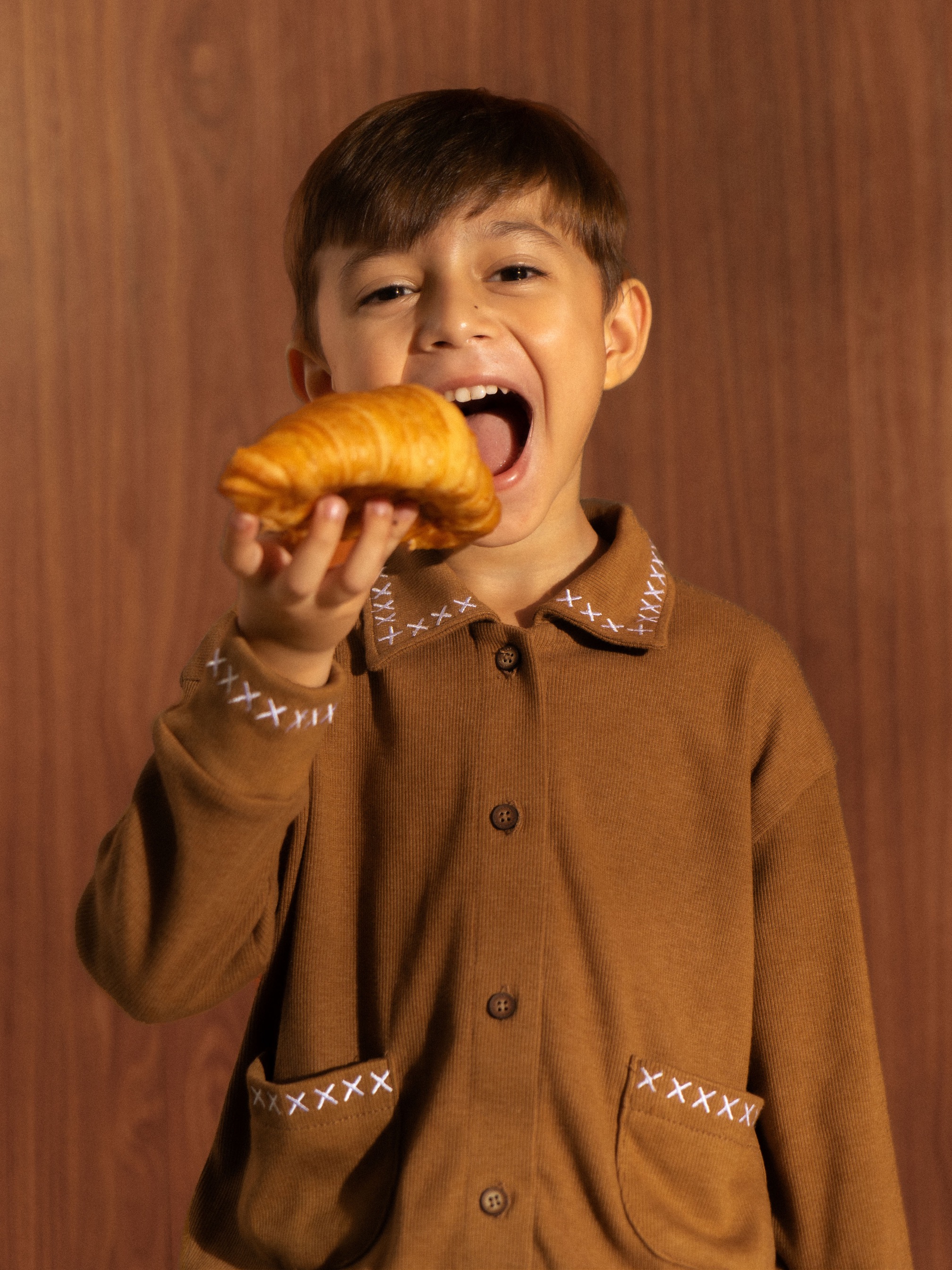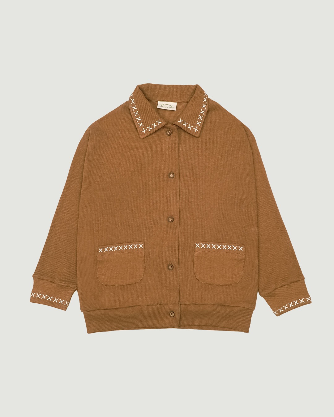 SABINE AND HEEM - GOTTA Cotton Rib Embroidery Cardigan - Light Brown - Kids Cardigan