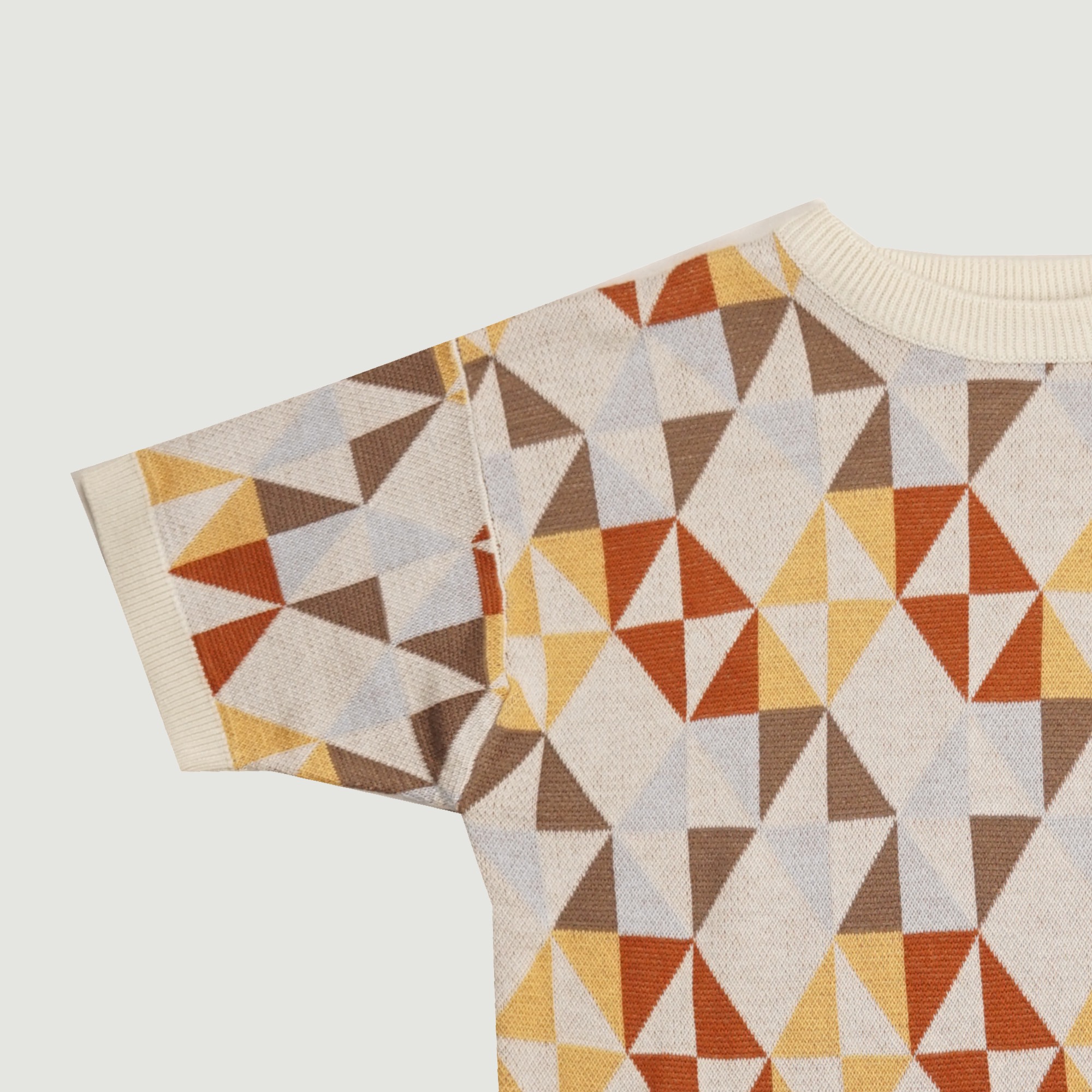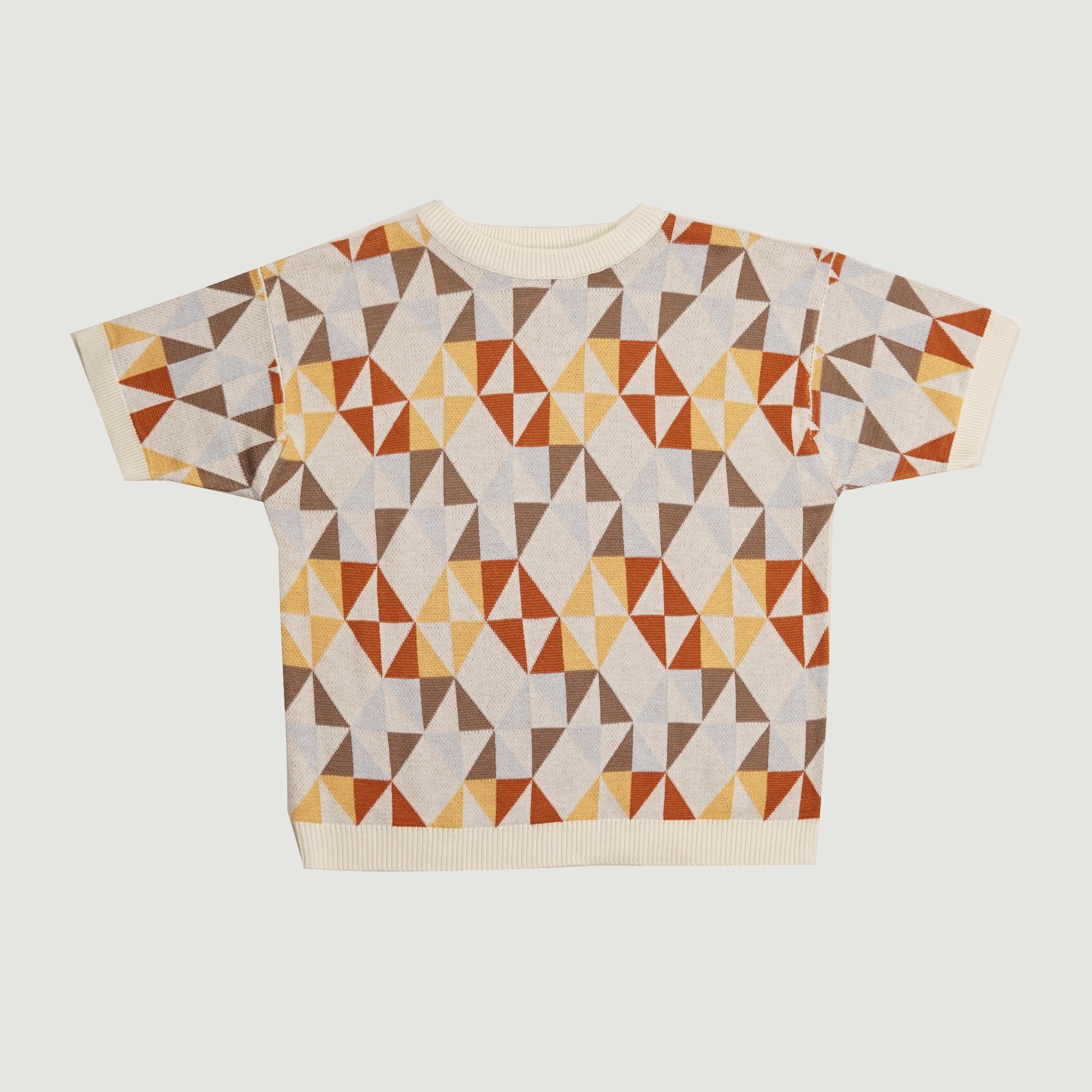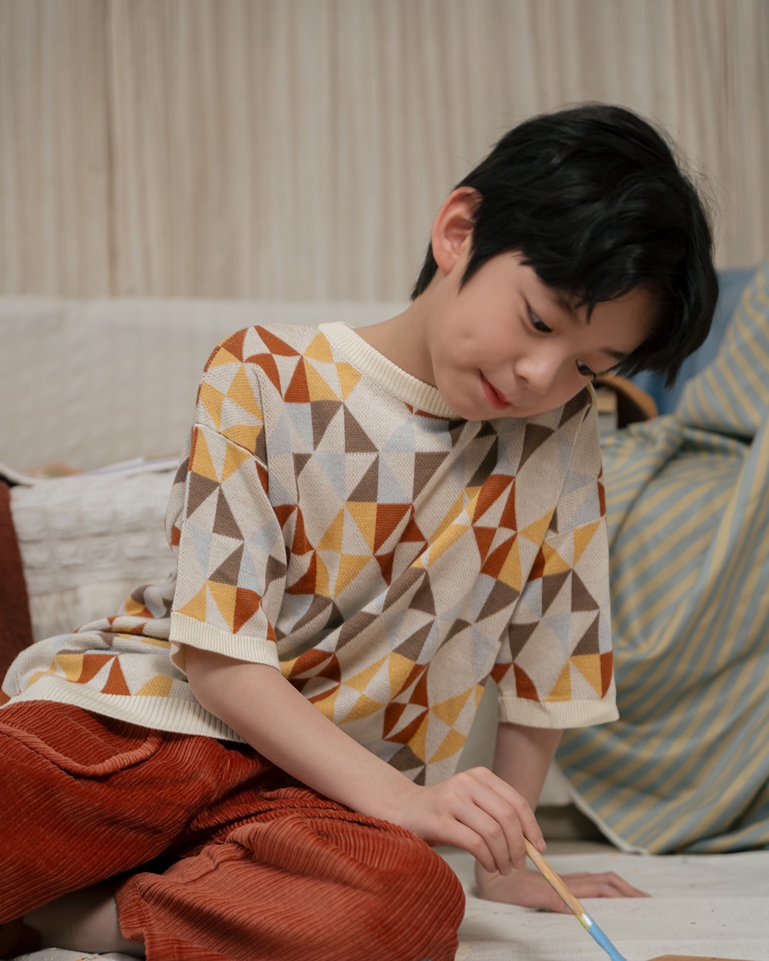 A knitted children's t-shirt made of 100% cotton with quilted pattern details, which is very soft, lightweight, and breathable.