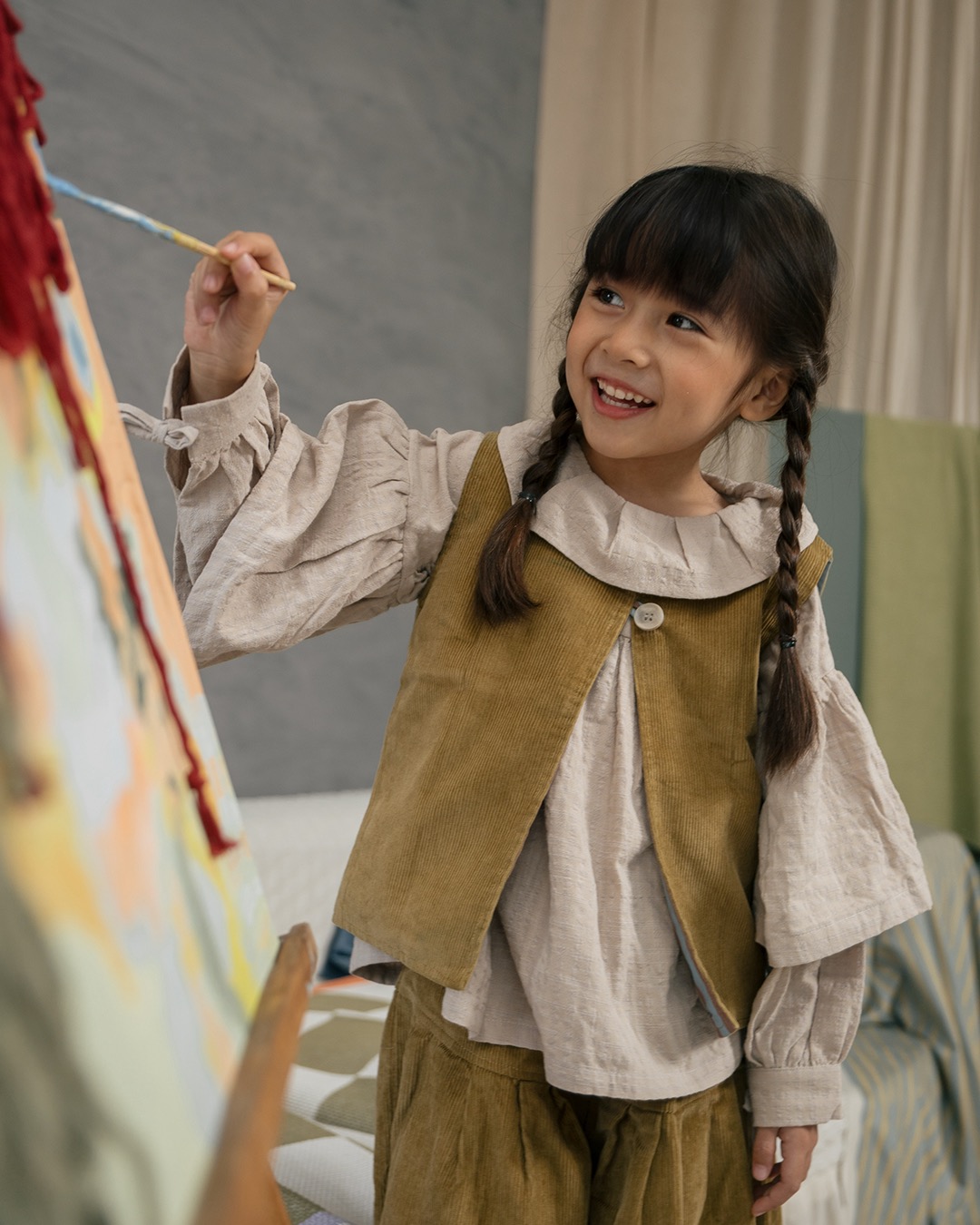 Children's vest made of soft premium corduroy, featuring buttons on the front.