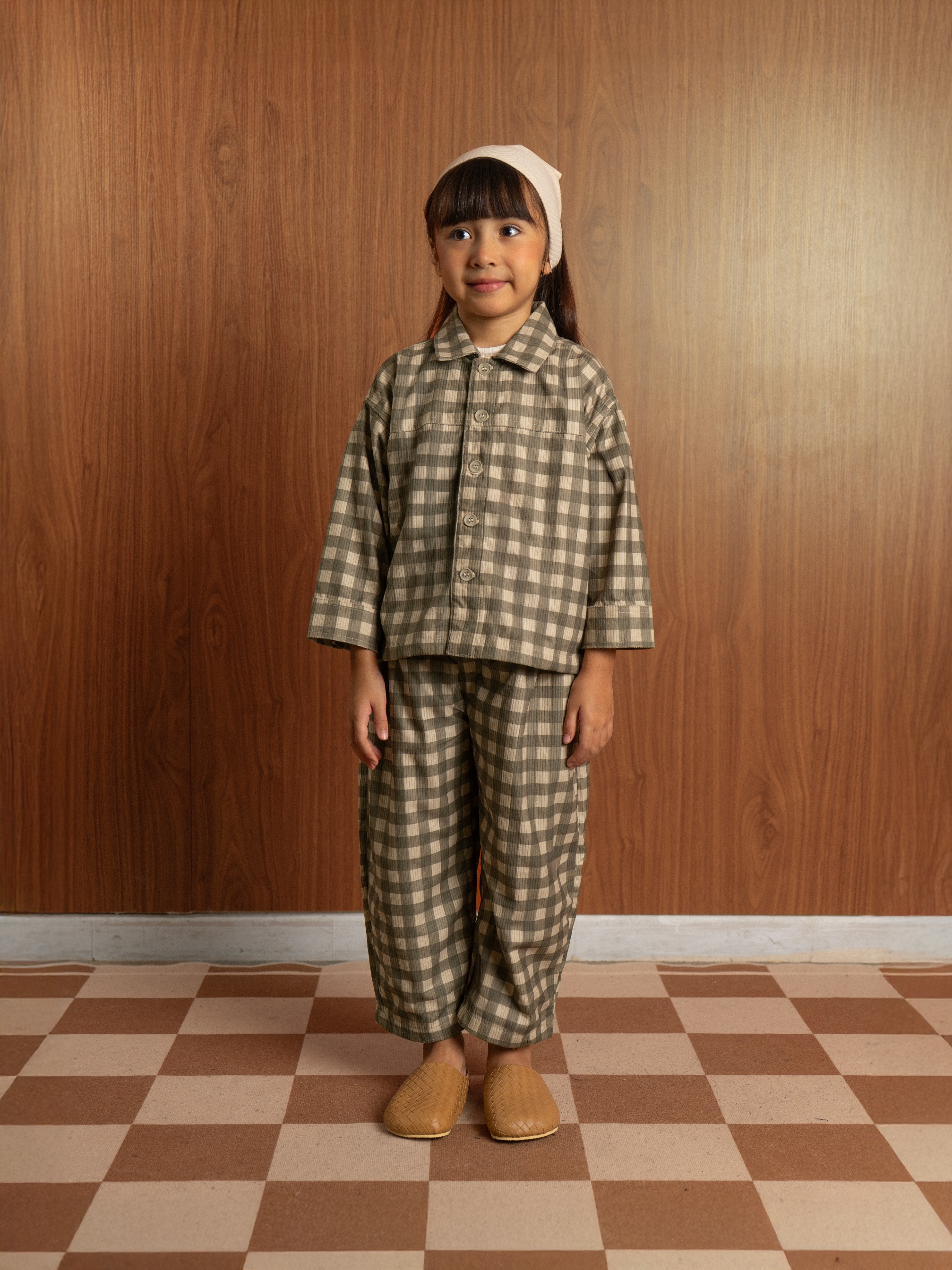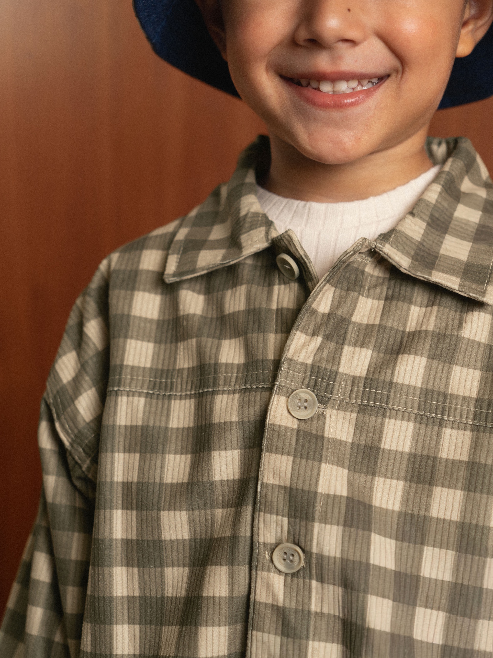 Kids’ jacket made from soft premium printed corduroy. Features button details on the front for added function and style.