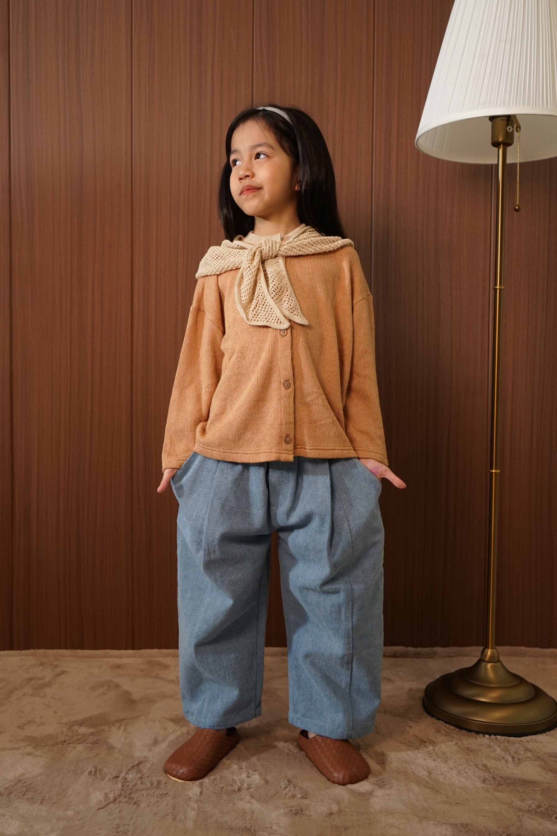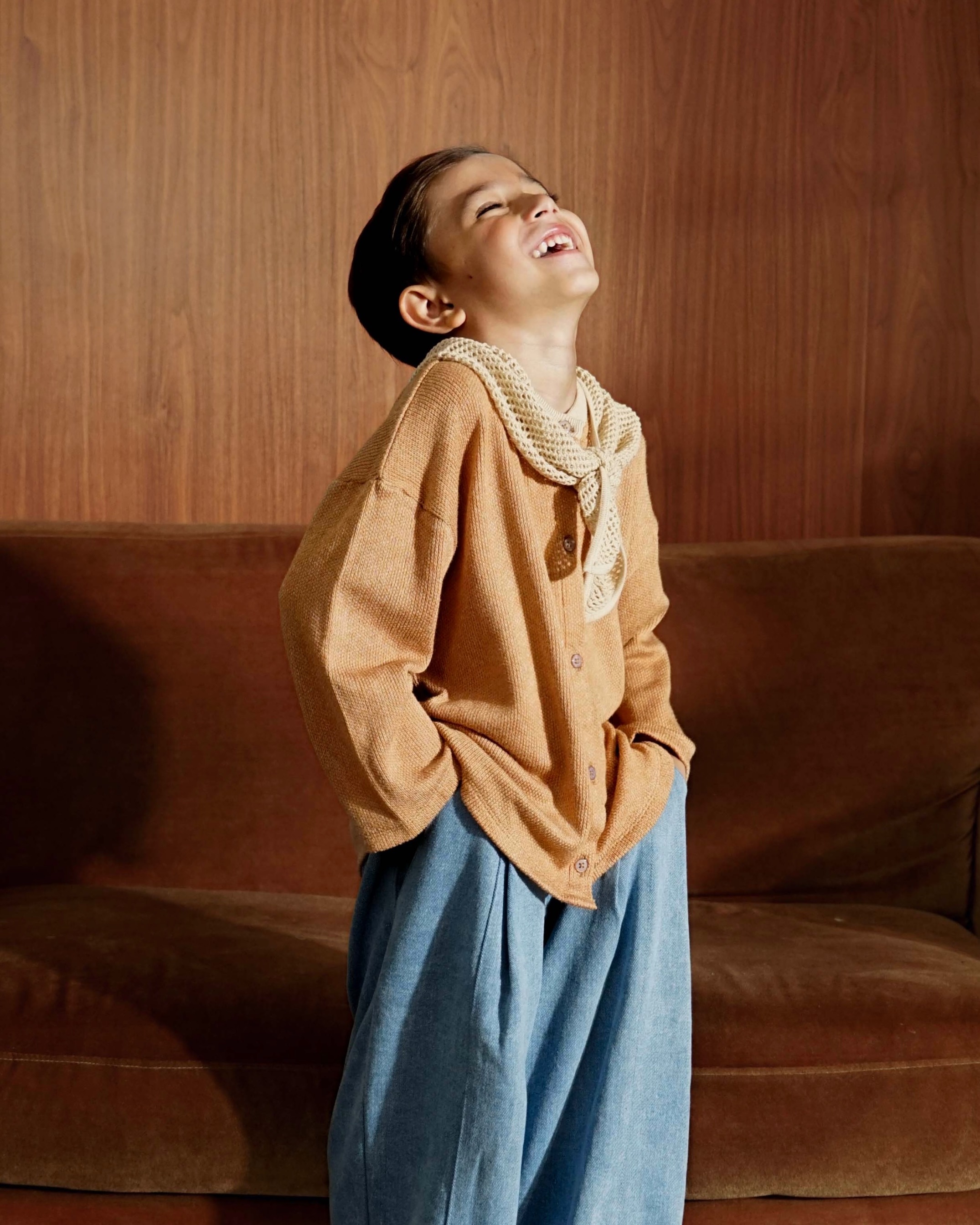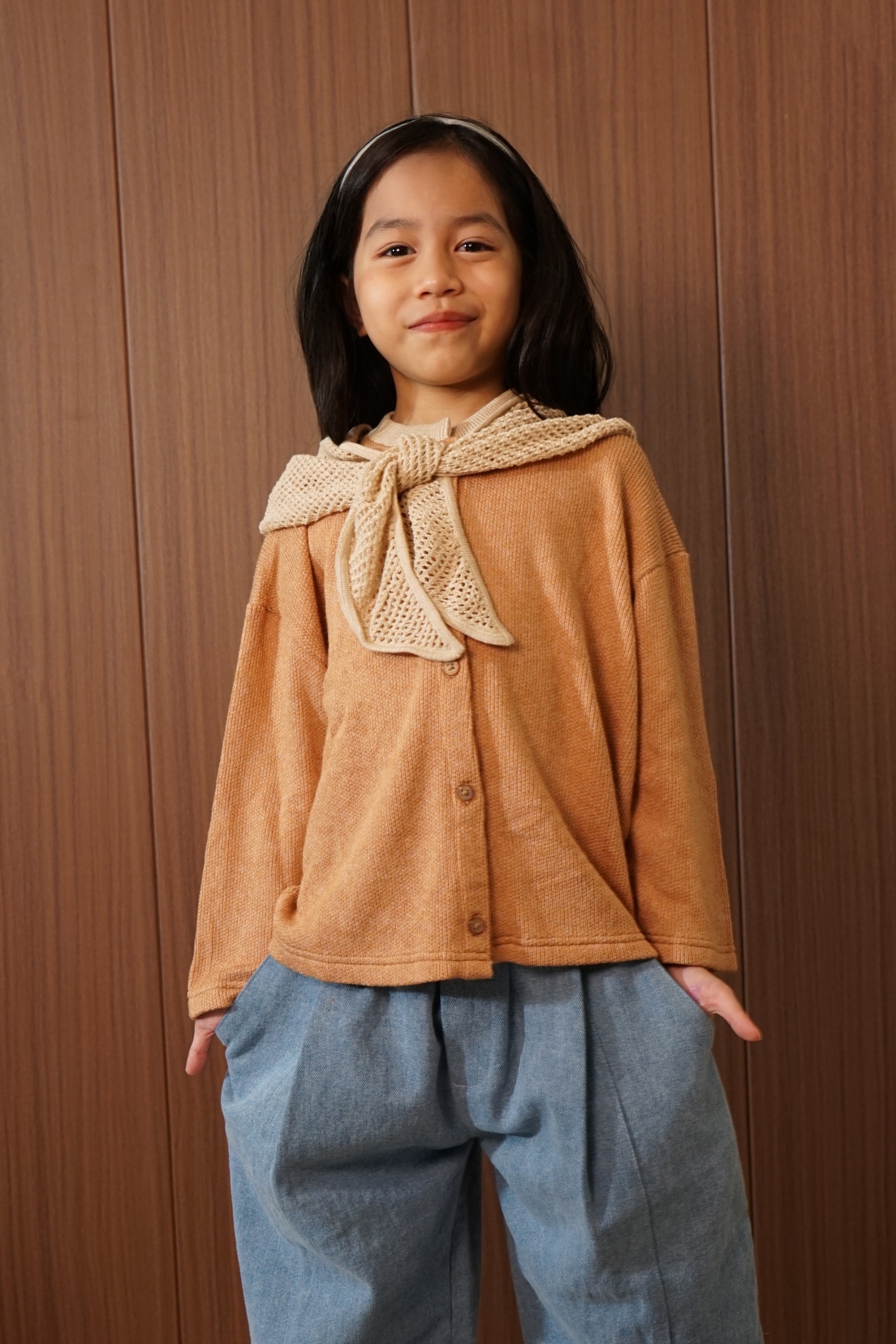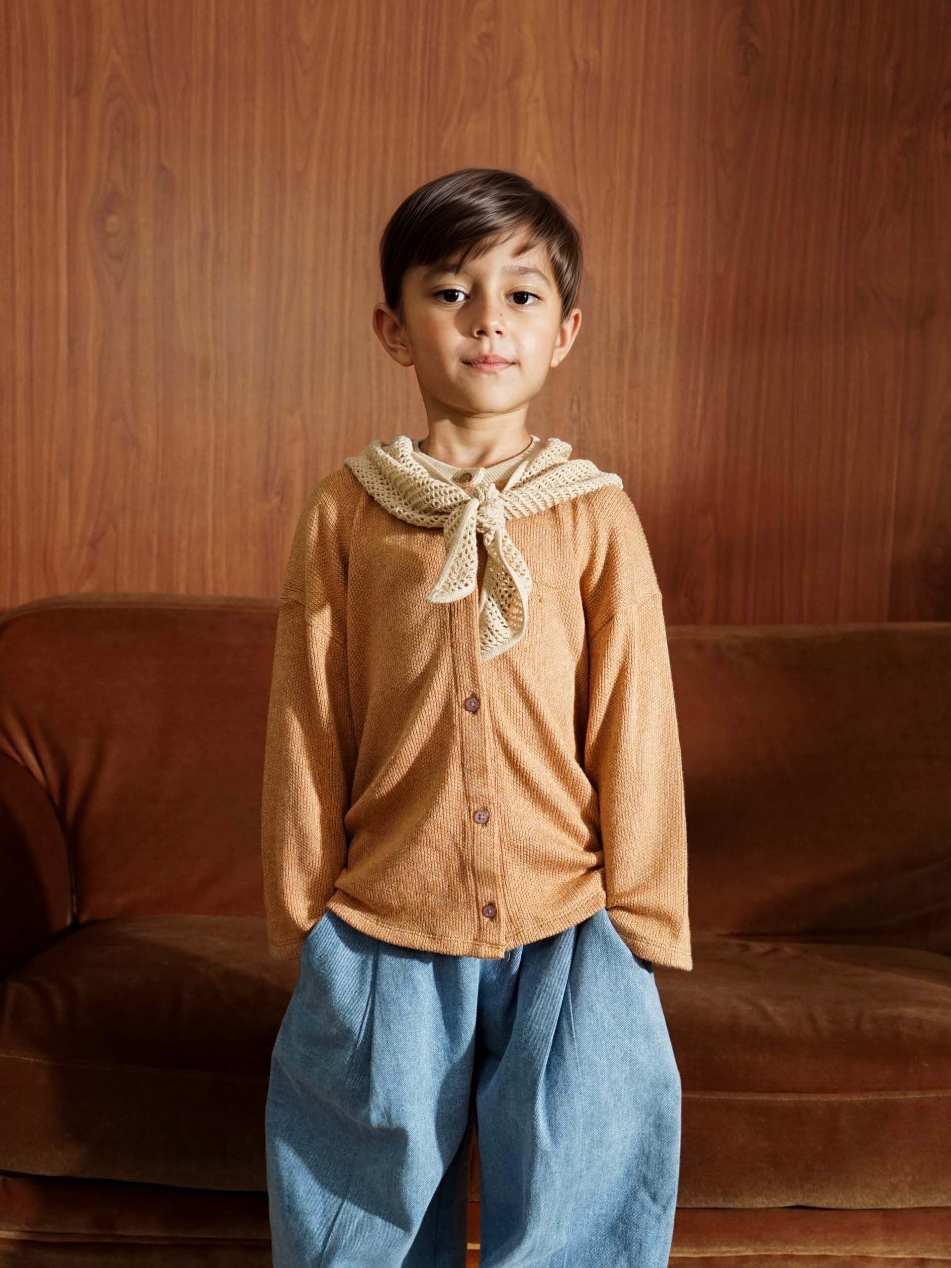 WOODY Scarves Knitted Cardigan, a knitted top featuring a knitted scarf detail around the neckline.