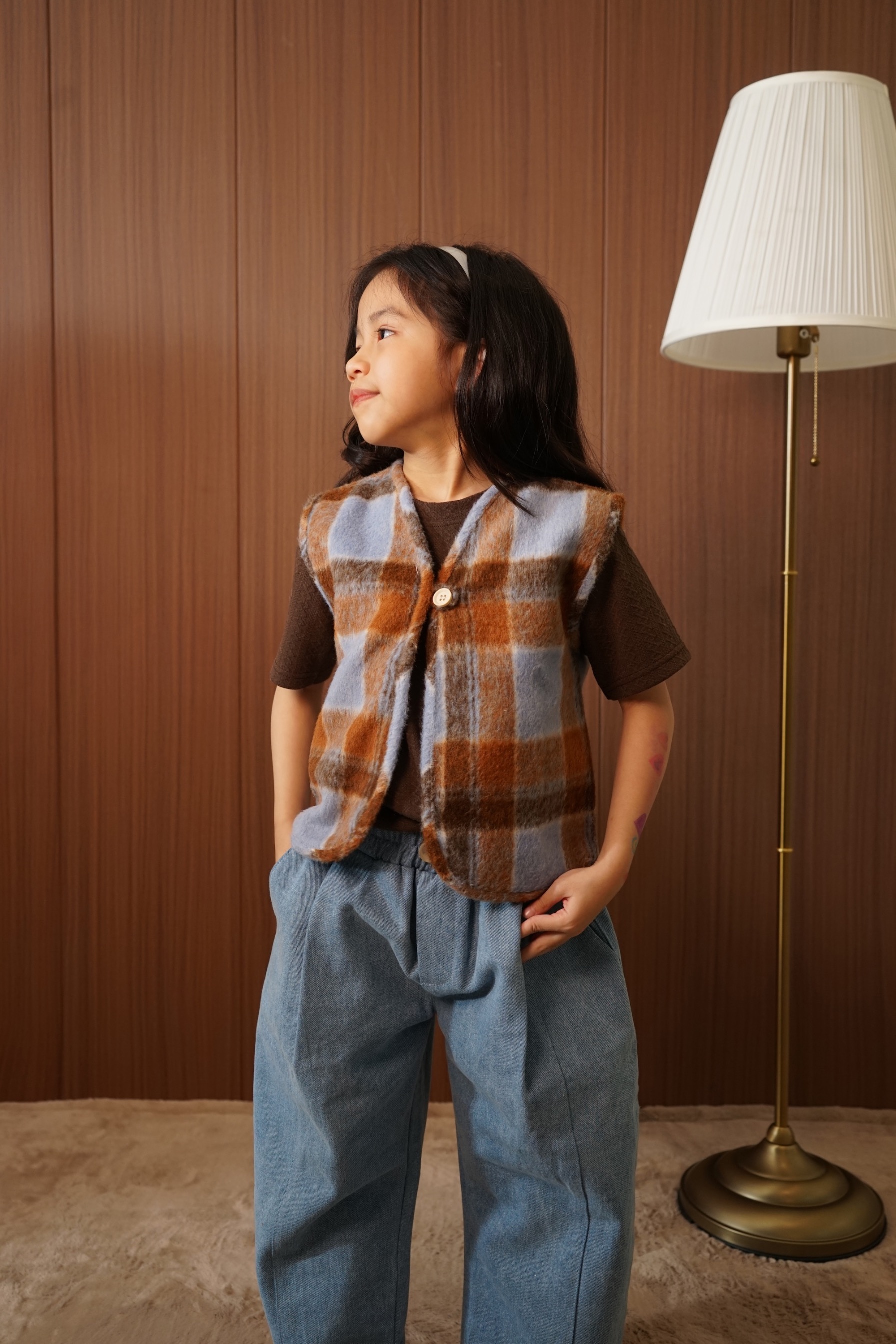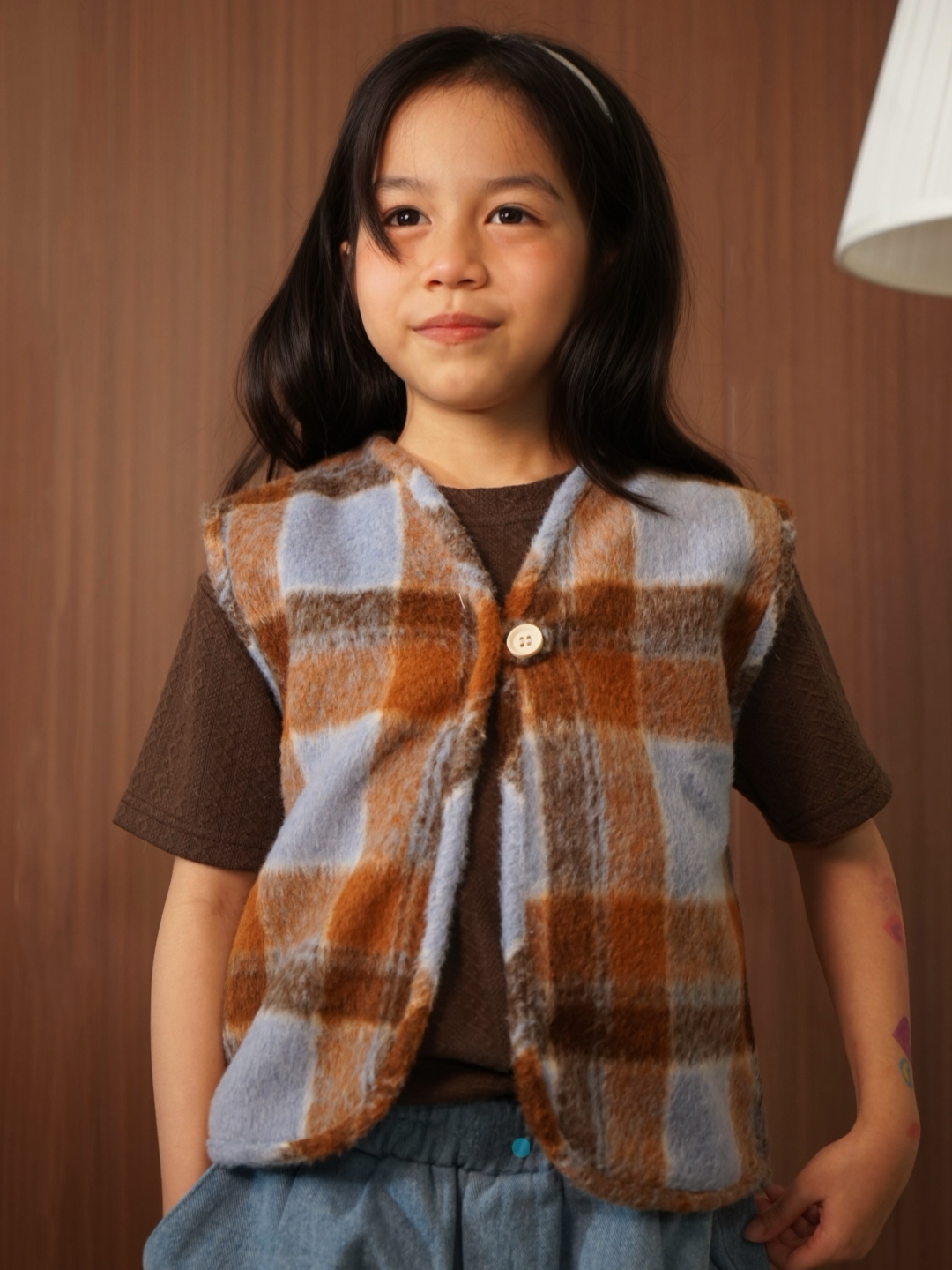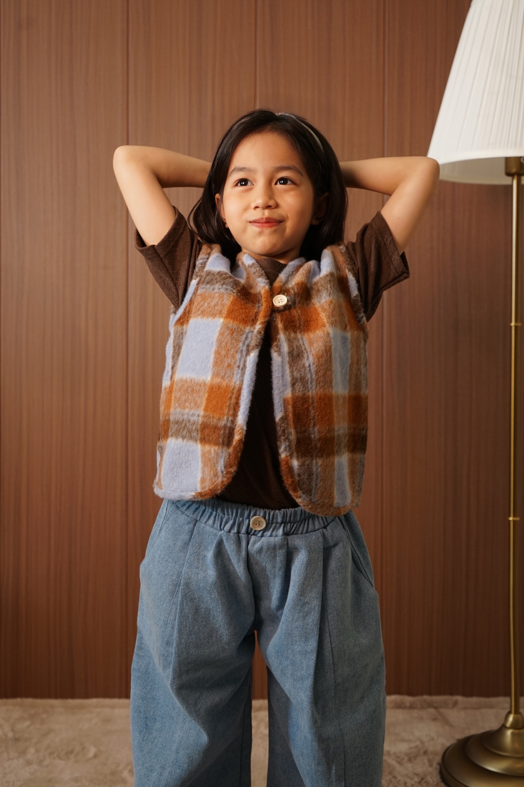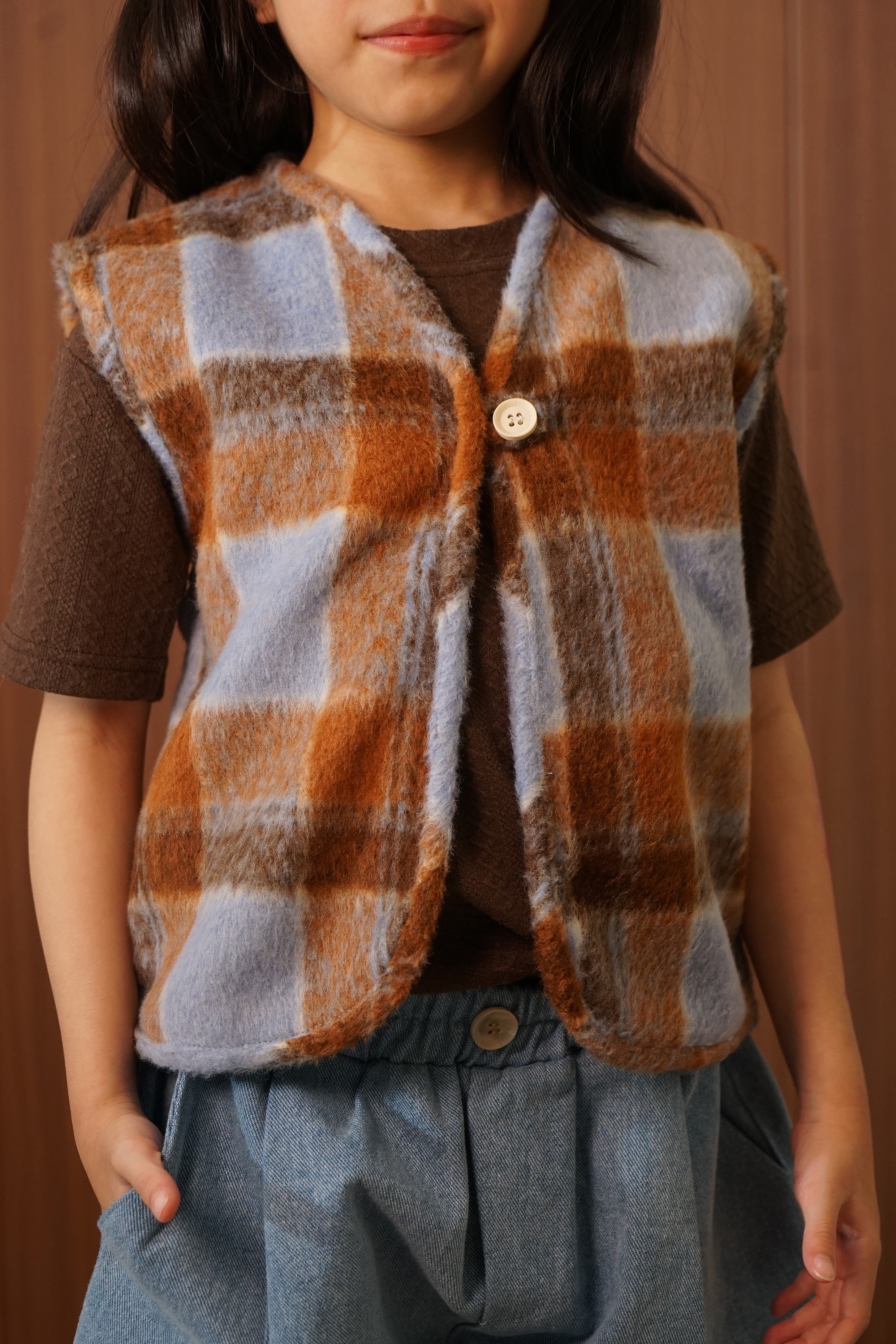 PUUA Reversible Fur Vest, a 2-in-1 kids vest that can be worn on both sides (reversible), made from a combination of unique fur material and denim.