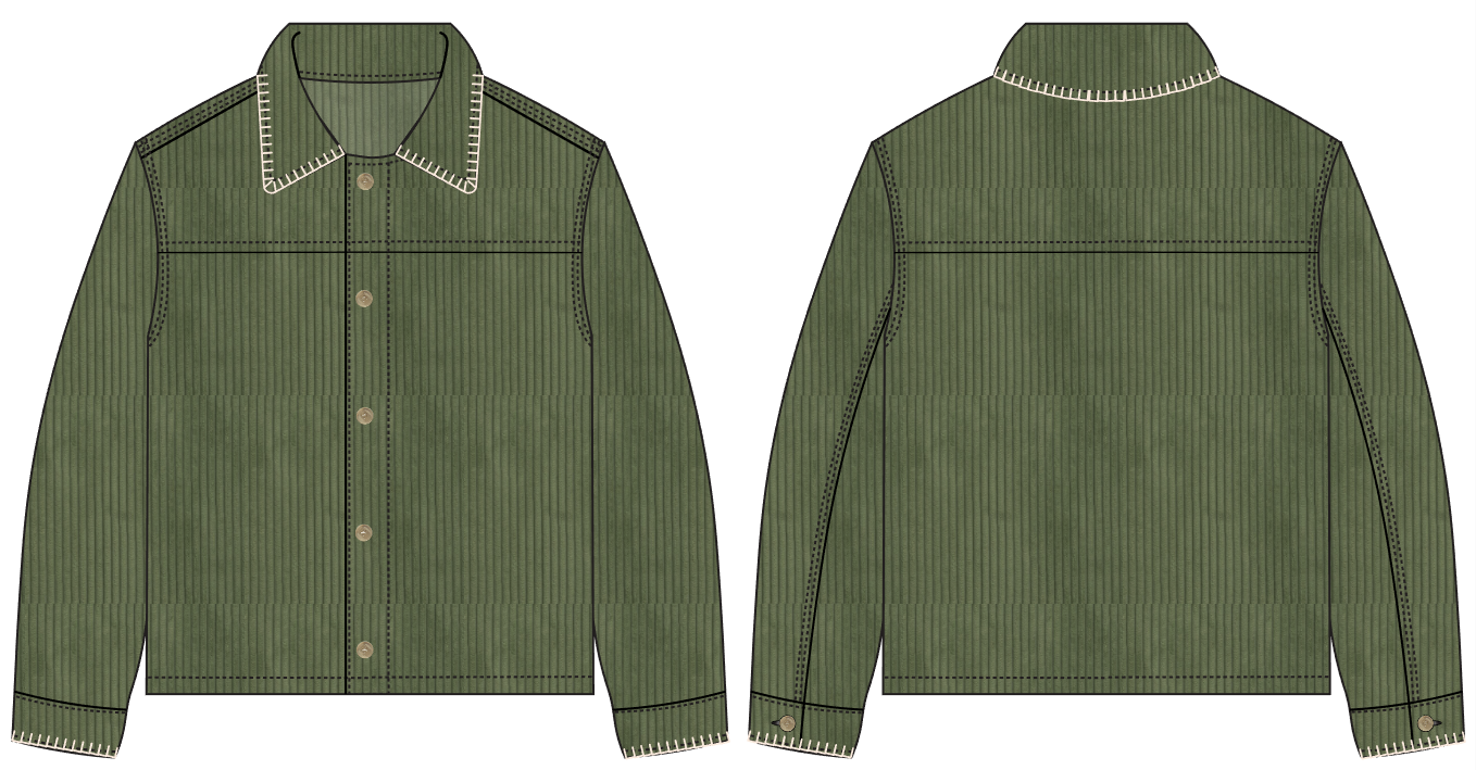 BODHI Sashiko Jacket, a children’s jacket made from soft premium corduroy. It features handmade sashiko details on the collar and front placket, adding a unique and aesthetic traditional touch.
