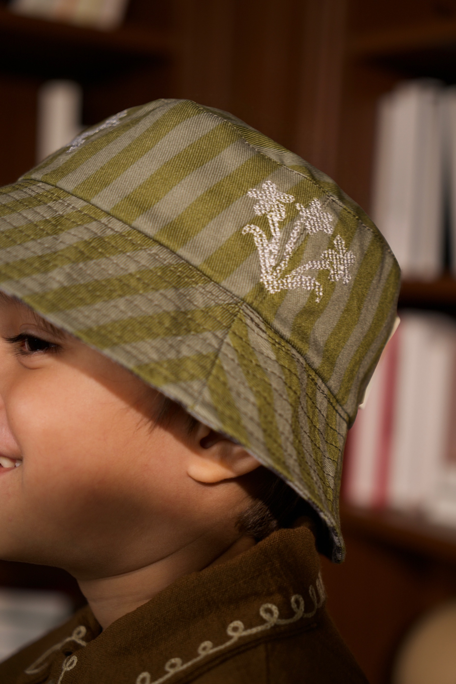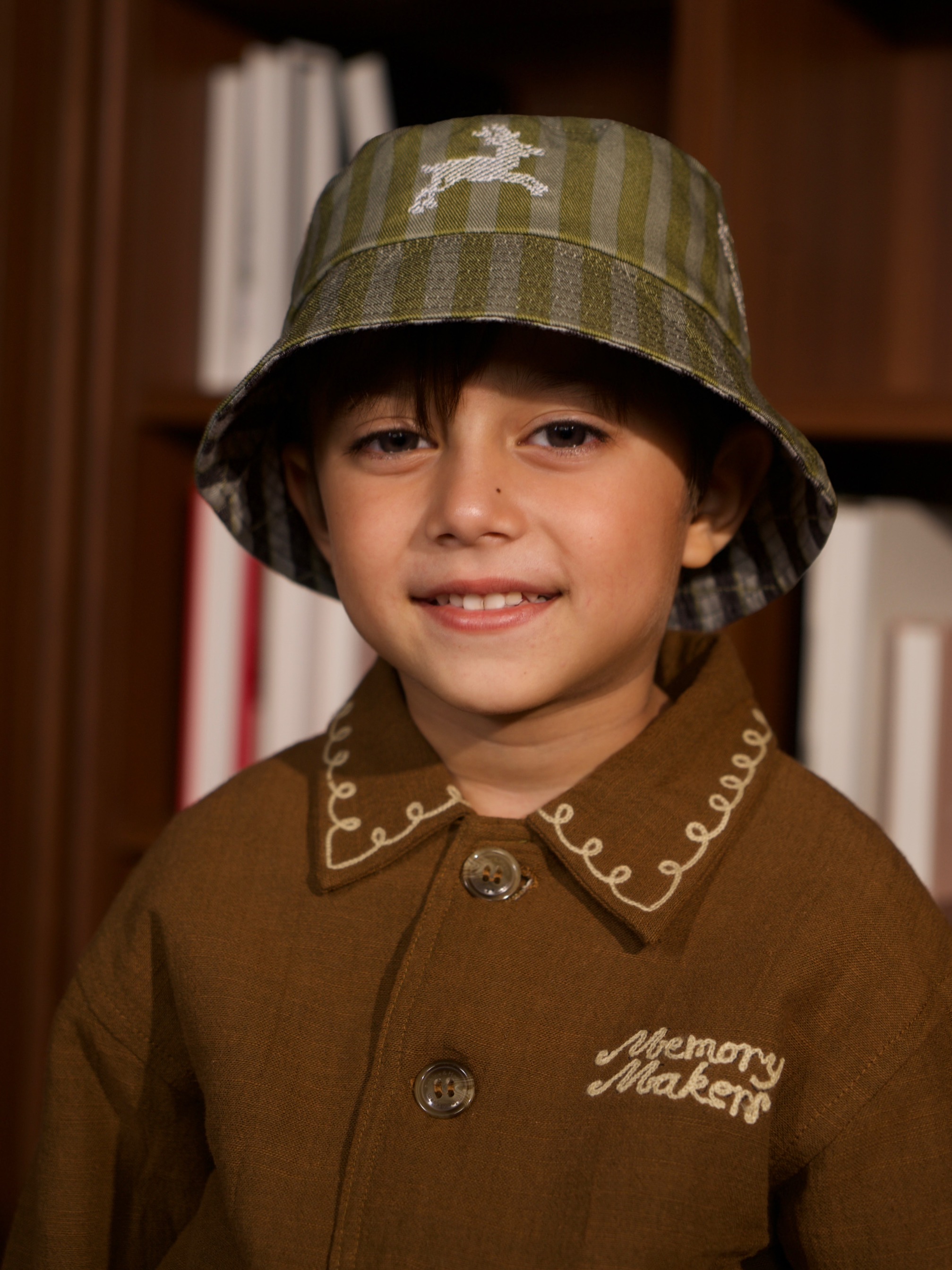 2-in-1 reversible kids’ bucket hat made from a stylish and comfortable combination of denim and twill. Finished with a Sabine and Heem rubber label detail.