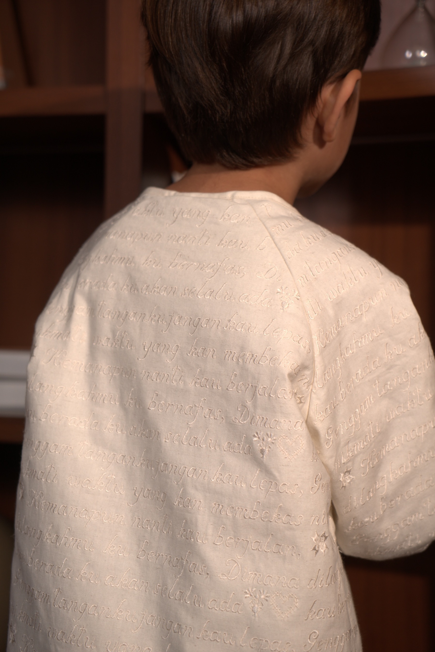 A puff outer made from 100% cotton fiber, featuring full embroidery of the official RAN “MEMORI” lyrics.