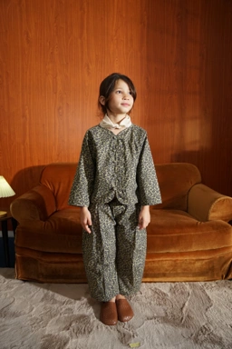 Children’s cotton pants with a printed design and a balloon cut that creates a unique and modern silhouette. Designed with a fully elastic waistband for children’s comfort, and finished with front button details to enhance the look. Soft, lightweight, and breathable, making them comfortable for everyday activities.