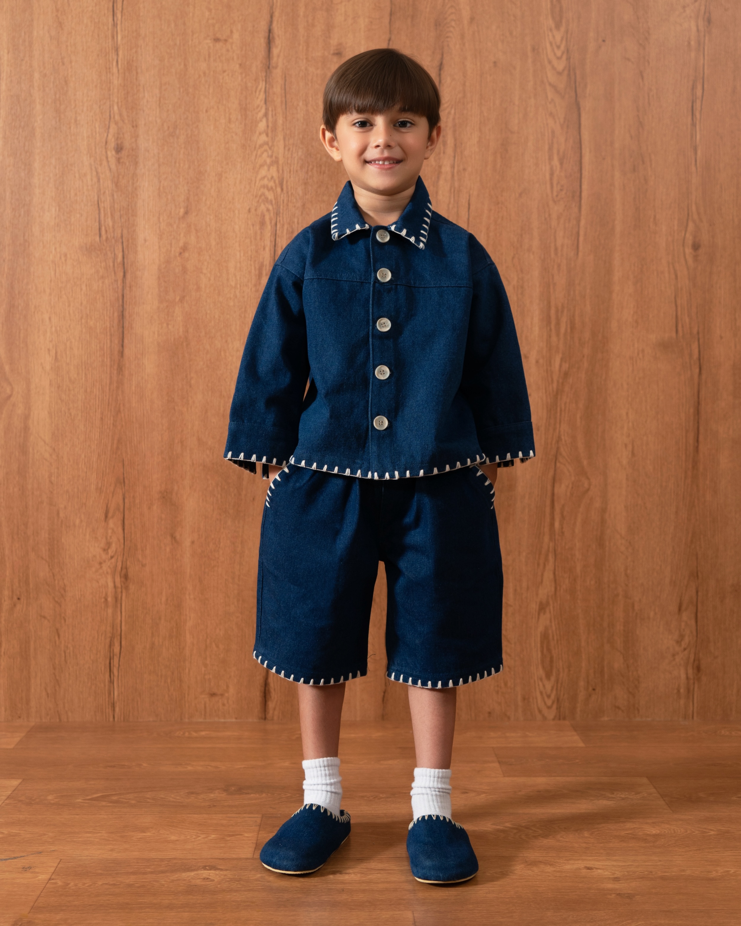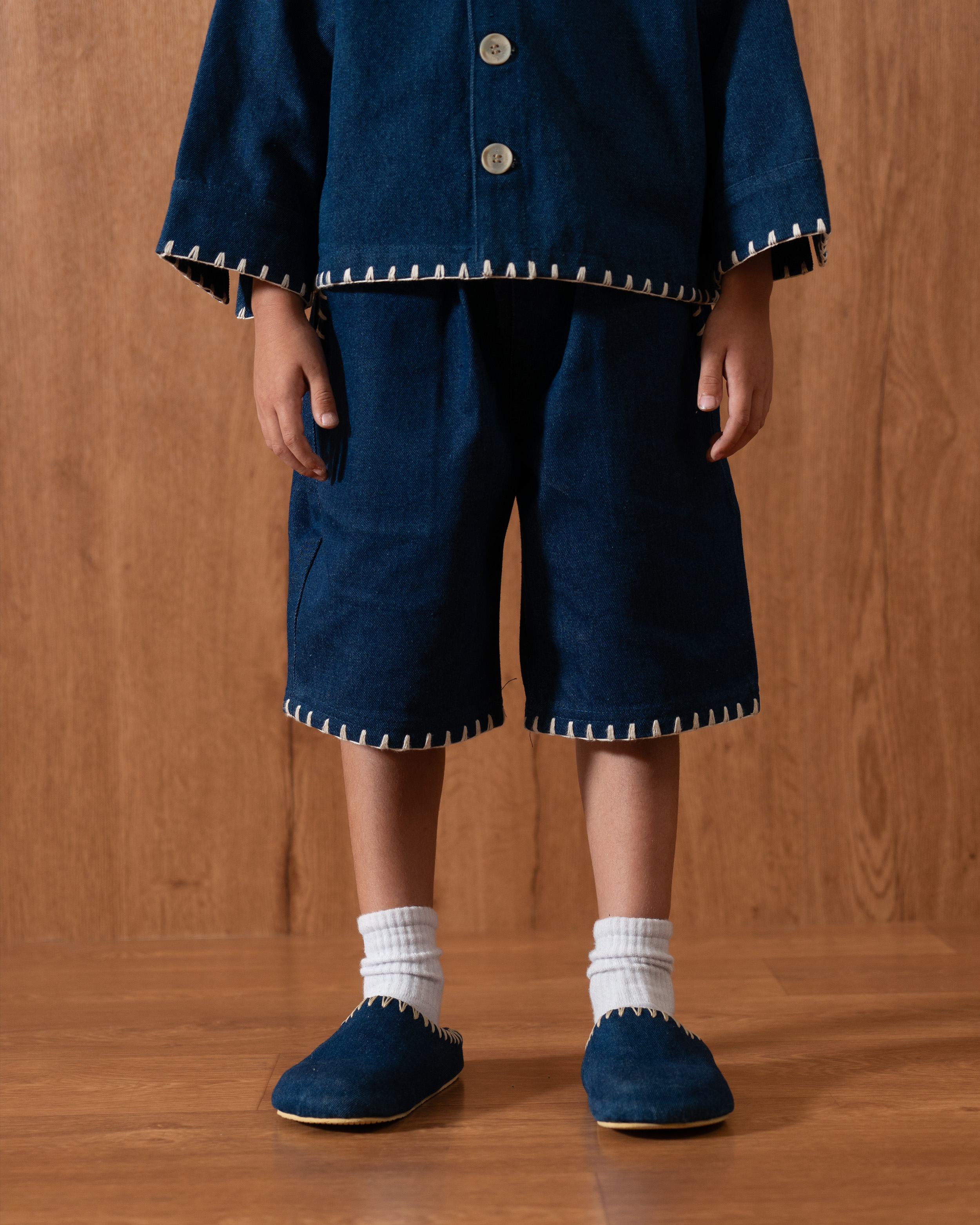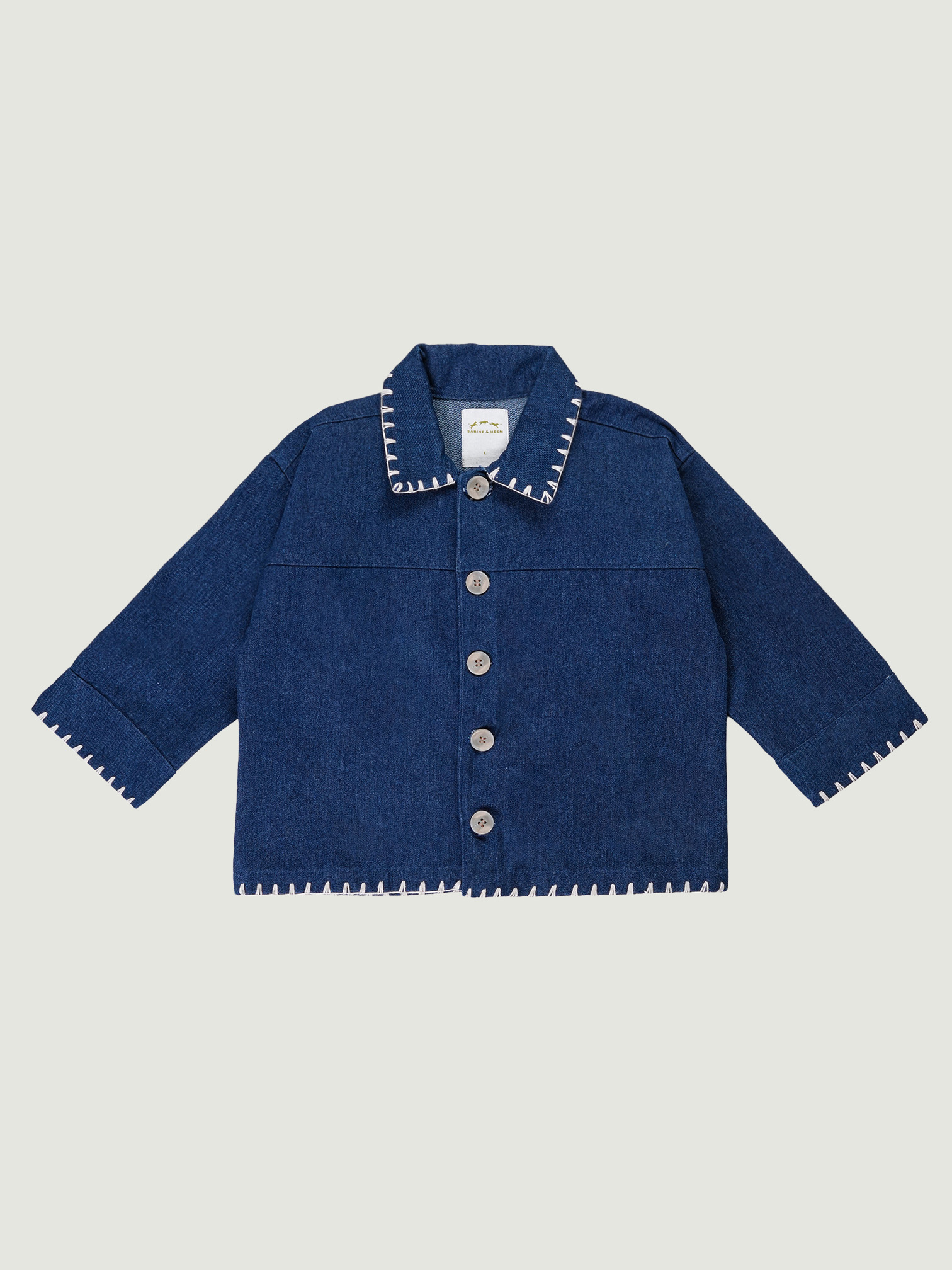 Handmade Sashiko detailing on the collar, sleeves, and hem