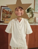 Made from natural fiber fabric that is breathable, absorbs moisture well, has a distinctive texture, is strong and durable, yet wrinkles easily—creating a natural, relaxed, and effortless look.