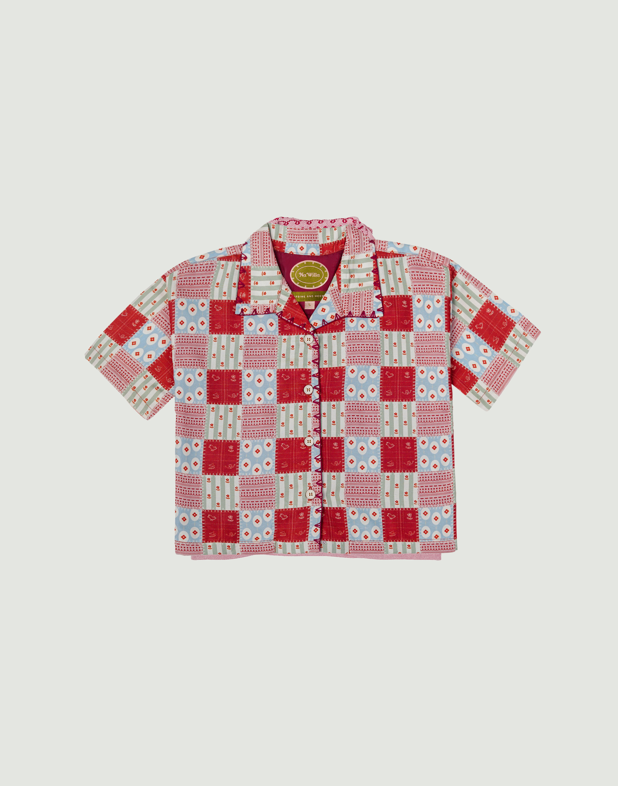 4. Detail jahitan sashiko pada placket kancing dan kerah