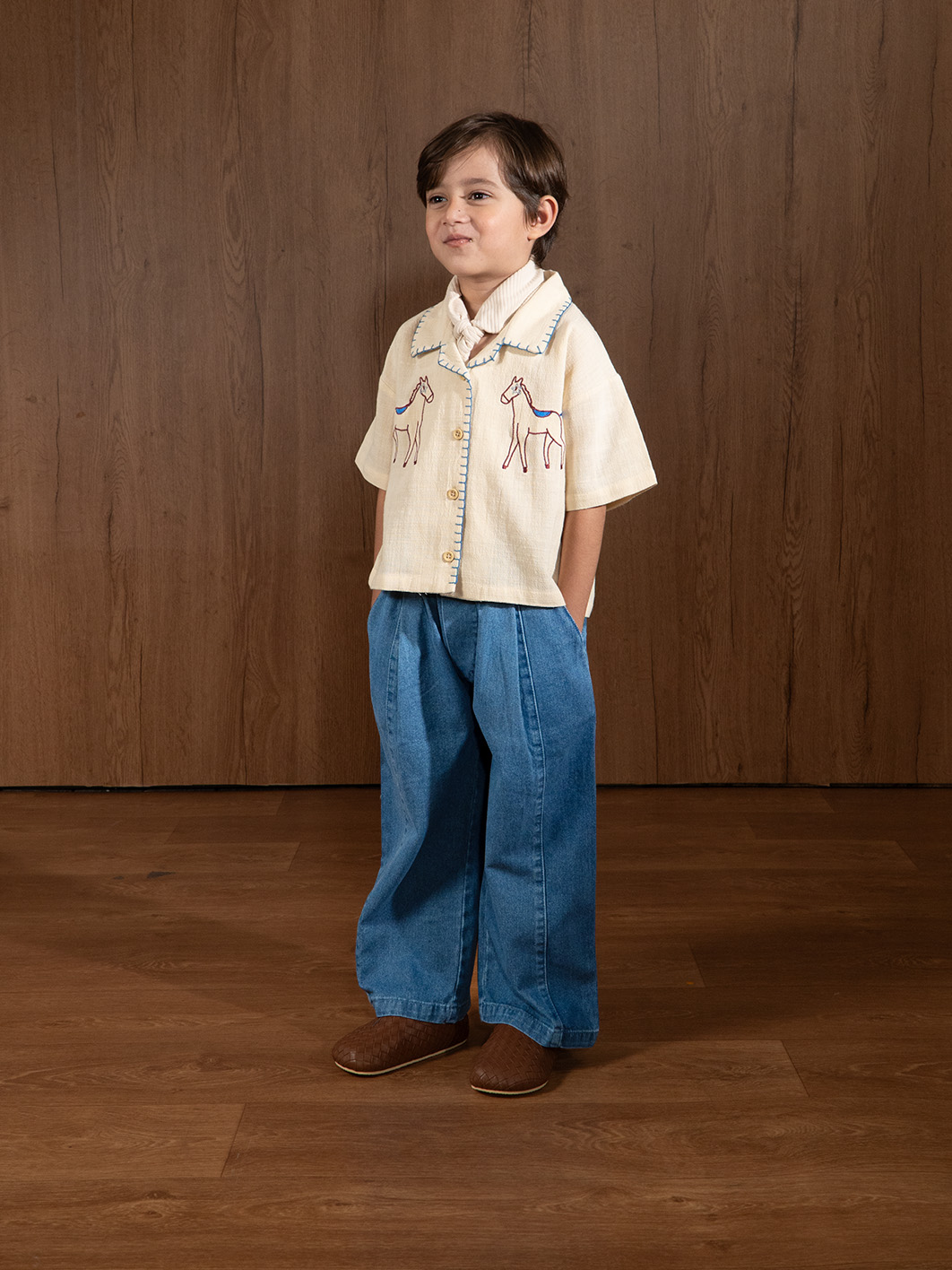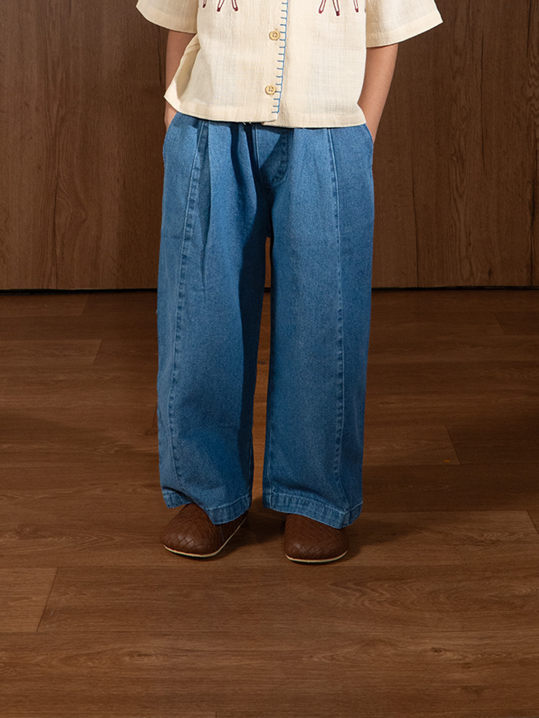 Celana anak berbahan denim dengan cutting loose pants, dengan detail full karet pada bagian pinggang dan tali pada bagian depan yang mempermanis tampilan celana. Sangat nyaman digunakan, lembut, ringan dan breathable.