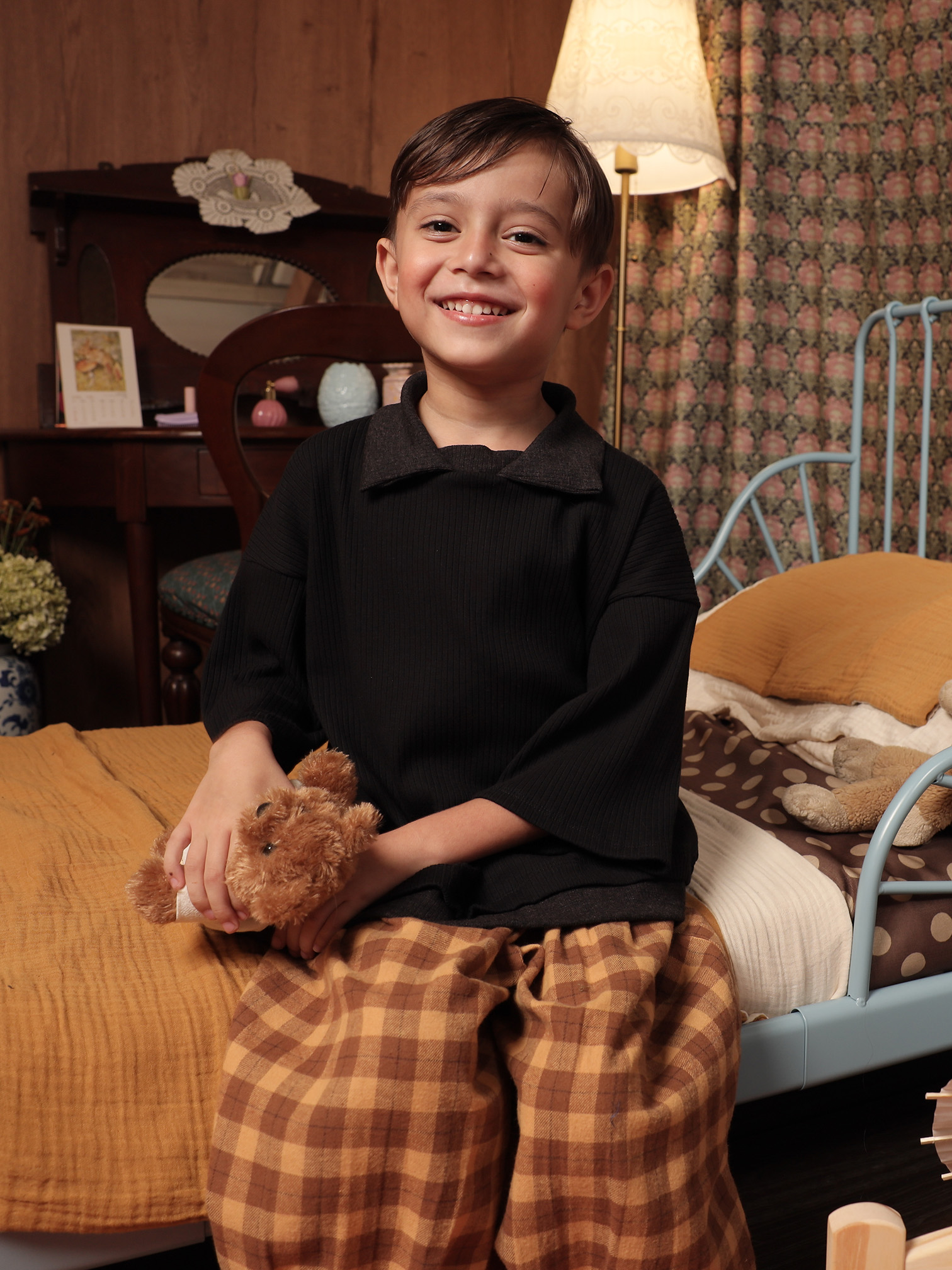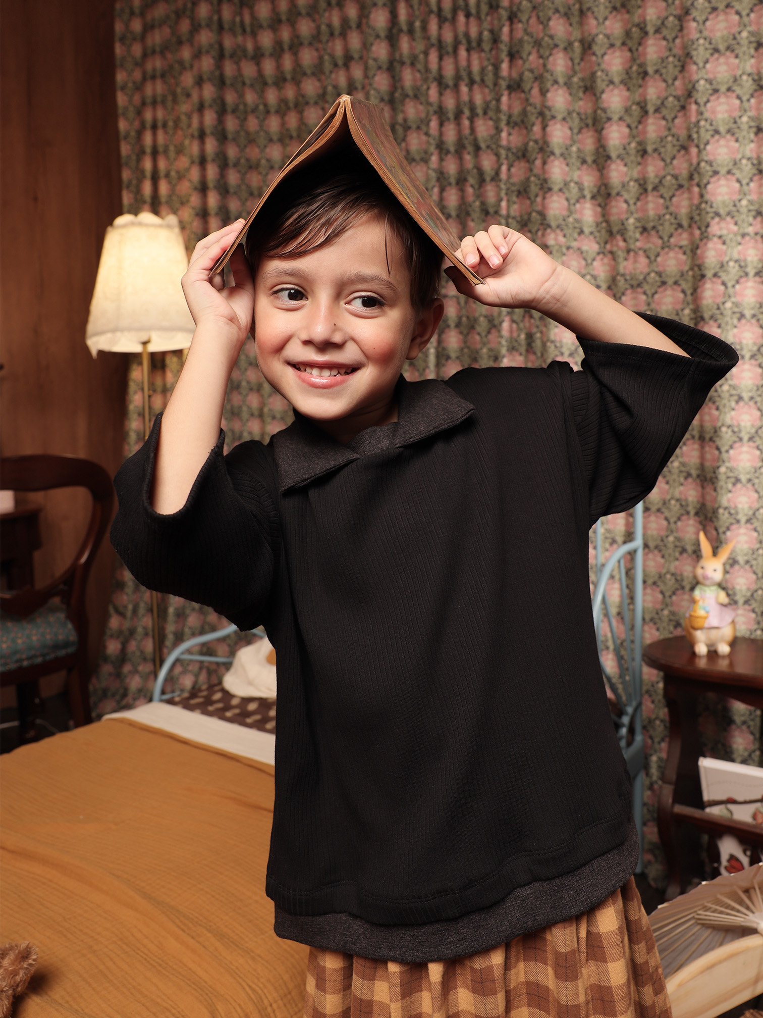 2. Kerah dan pinggiran bawah dengan aksen warna kontras